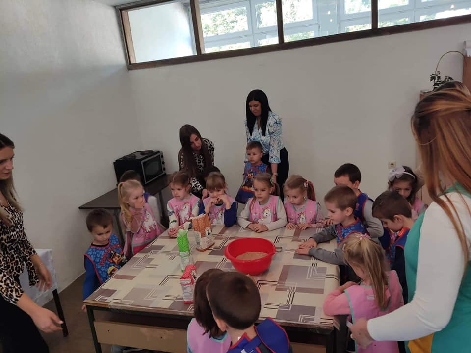 Током данашње посјете нашој школи малишани су учествовали у прављењу укусних и здравих колачића, што је за њих био још један изазов.